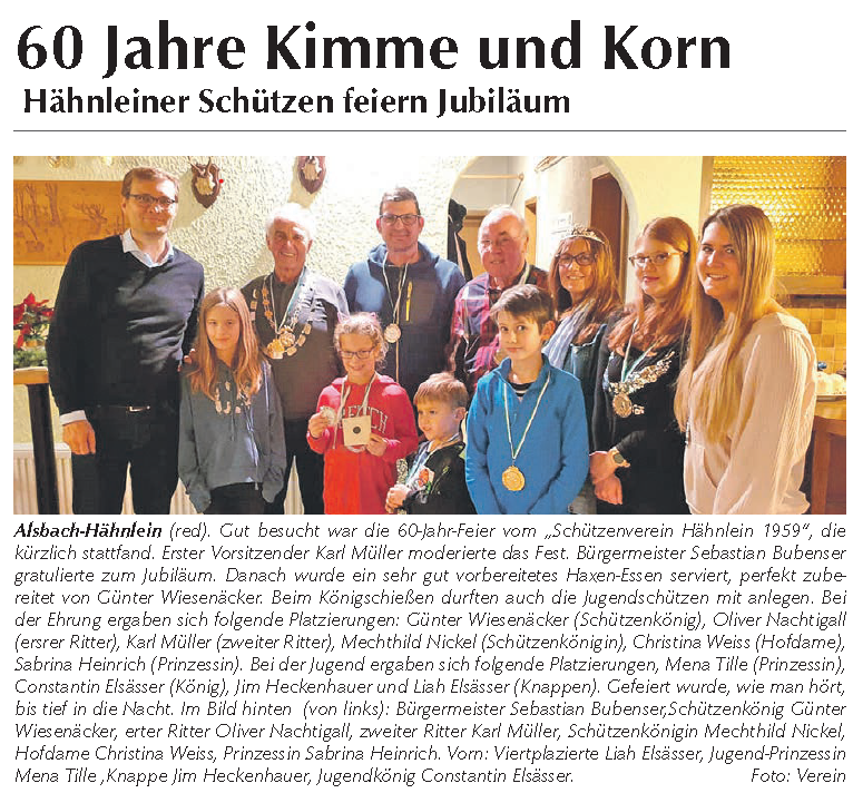 Jahreshauptversammlung 2018 des Schützenverein Hähnlein